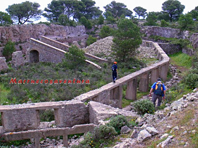 • Cruzamos dicha frontera y tomamos a la derecha una pista que se dirige hacia la carretera que va desde Beni Enzar a Farhana, para continuar unos 200 metros aprox. más adelante y girar levemente a la izquierda para comenzar a subir al Monte Gurugú por una antigua carretera que finaliza en unas canteras existentes en su parte baja.